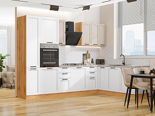 Главный плюс: много шкафчиков.  Выбрали вариант сандал белый. И не прогадали. Смотрится великолепное. Жаль, что двери идут без доводчиков.